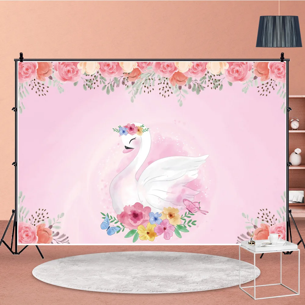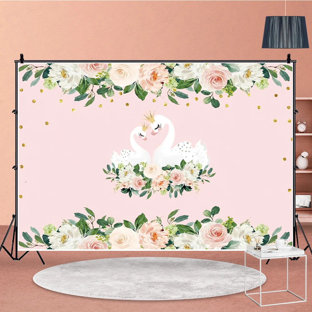 Элегантный белый лебедь на фоне золотой короны девушка день рождения сцена украшение баннер цветы желтый бриллиант романтический розовый фон фотографии