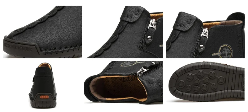 Мужские ботинки ручной работы Ngouxm, черные повседневные Теплые бо...