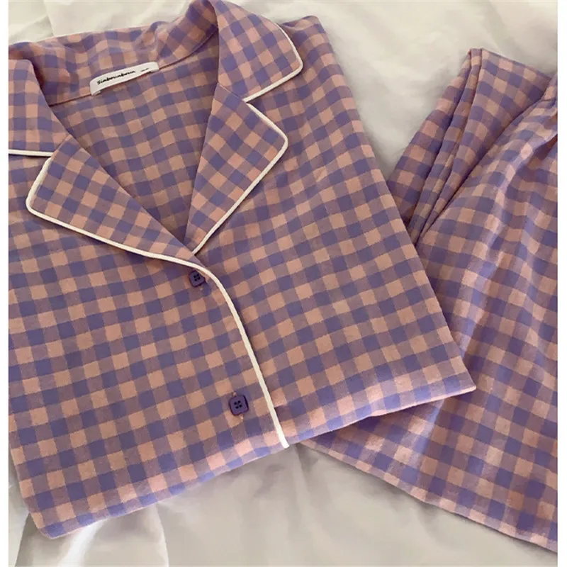 Женская клетчатая Пижама QWEEK, корейские фиолетовые пижамные компл...