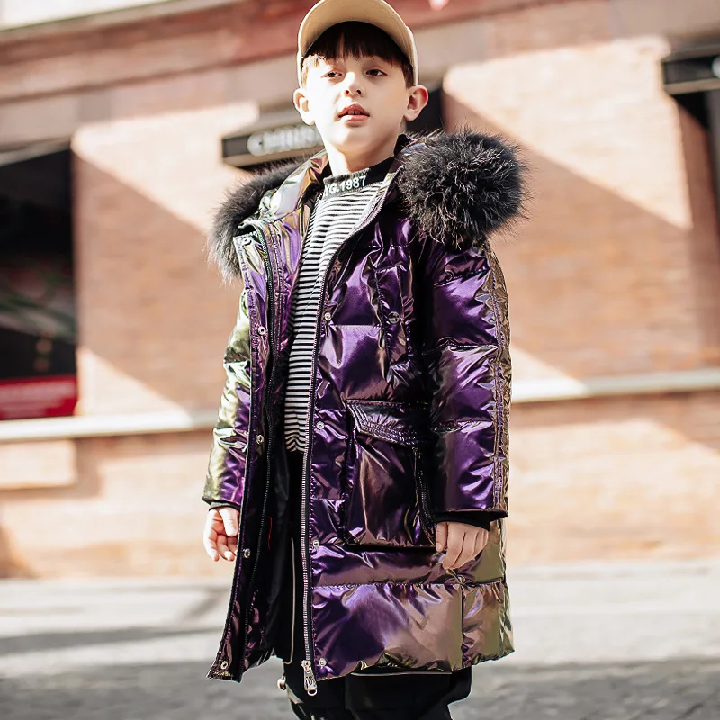 Детская пуховая куртка с капюшоном, водонепроницаемая пуховая парка с натуральным мехом, для мальчиков и девочек, для русской зимы, 2021 -30