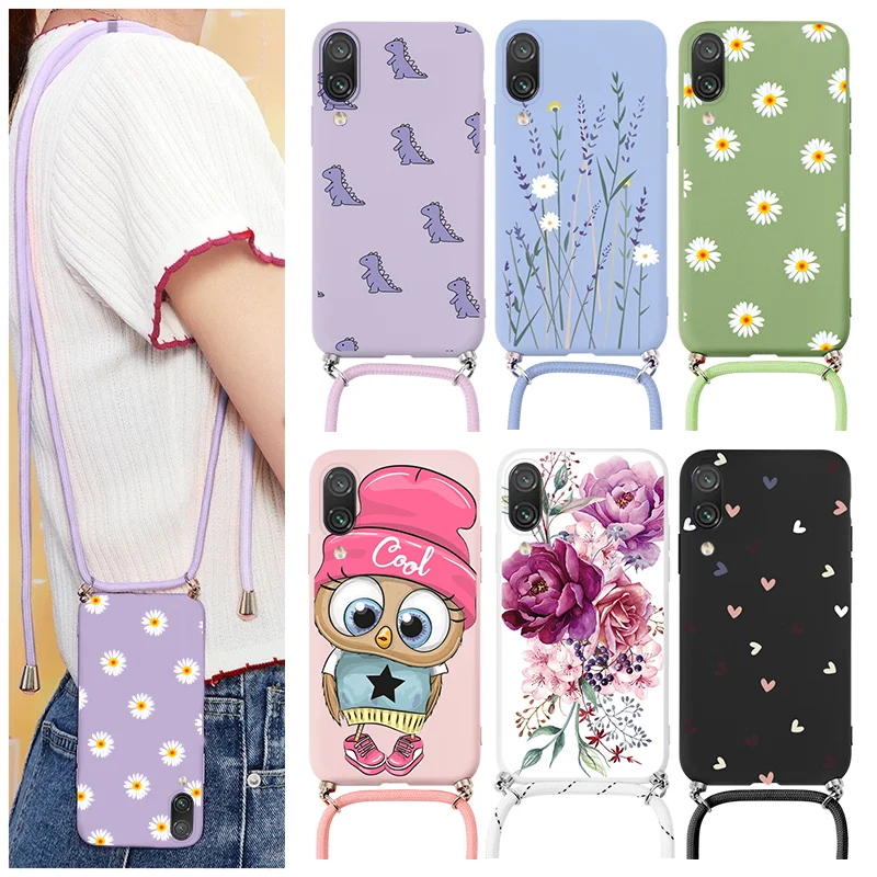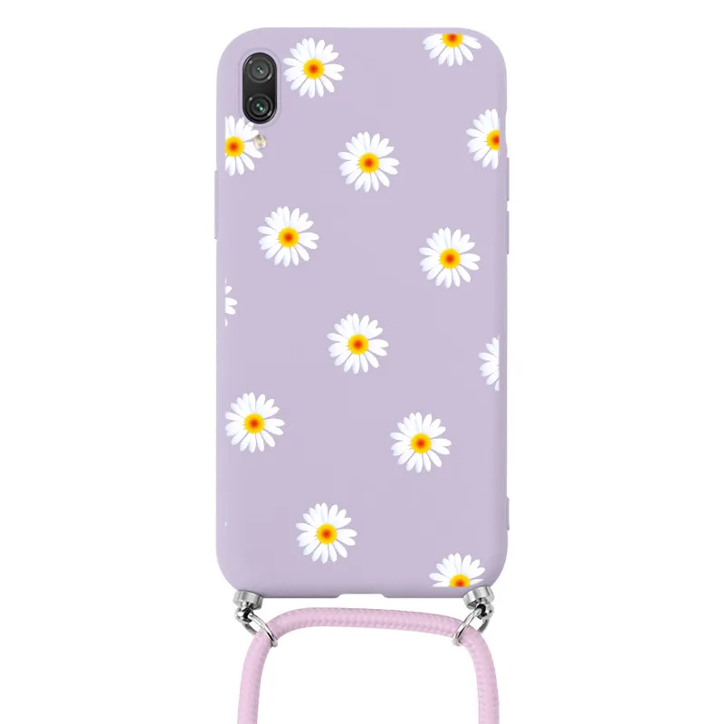Чехол для Xiaomi Redmi Note 7 Pro, ремешок, шнур, цепочка, ожерелье, ремешок, чехол для Redmi Note7, Note7Pro, цветок маргаритки, задняя крышка, бампер