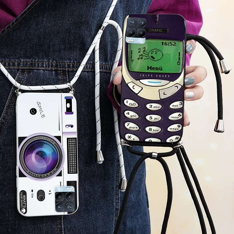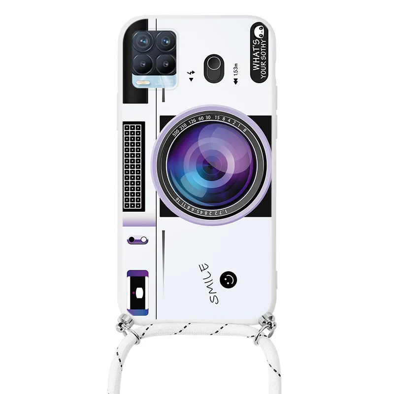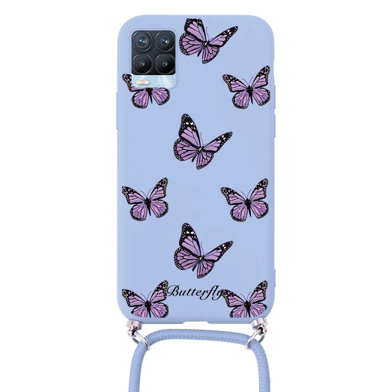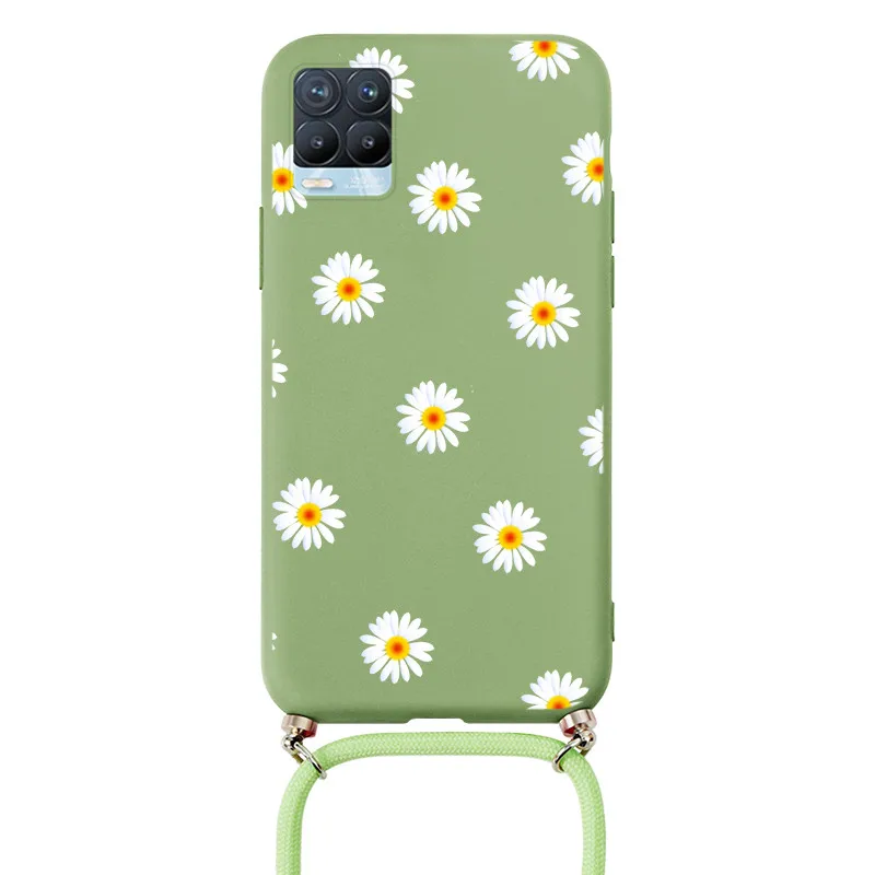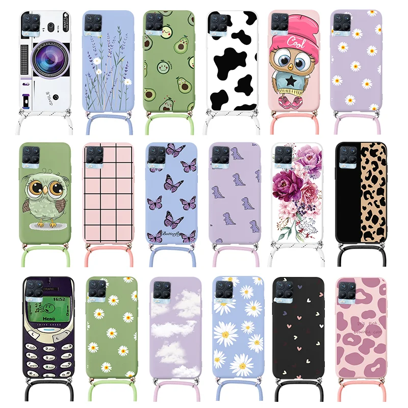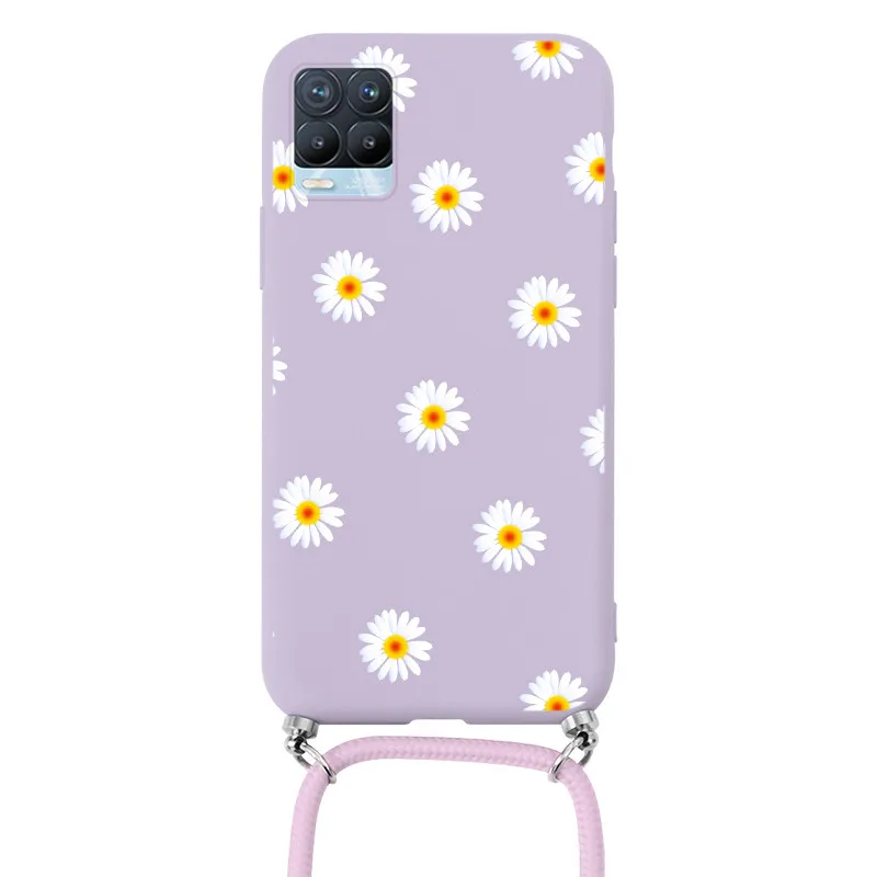 Чехол для OPPO Realme 8 Pro, ремешок, шнур, цепочка, ожерелье, ремешок, чехол для OPPO Realme8 Realme8Pro, цветы, задняя крышка, бампер, чехлы