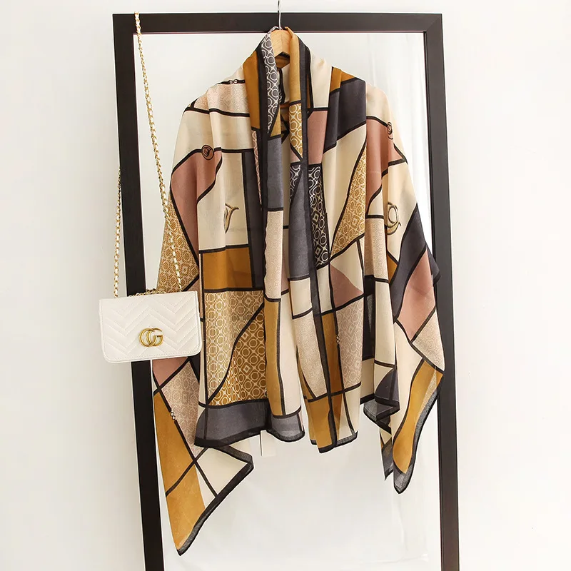 2021 новый дизайн брендовый женский шарф модный принт хлопок Весна ...