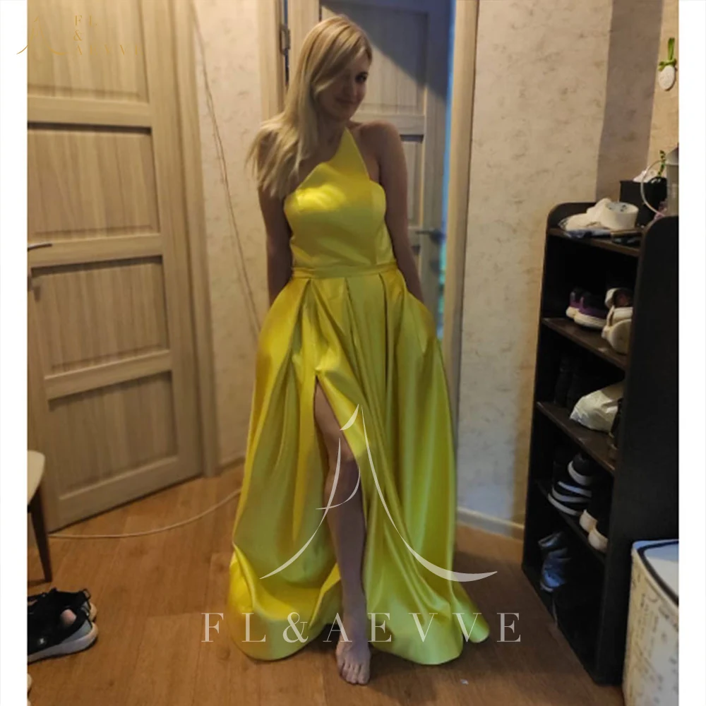 Модные Серебристые атласные вечерние платья без бретелек, желтые платья-трапеции с разрезом сбоку, женское платье для выпускного вечера