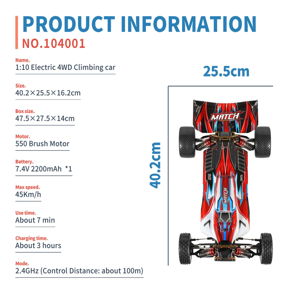 WLtoys 104001 RC автомобиль 1:10 45 кмч 4WD привод внедорожный 2,4G высокоскоростной Радиоуправляемый автомобиль формула 1:10 Байк VS Wltoys144001