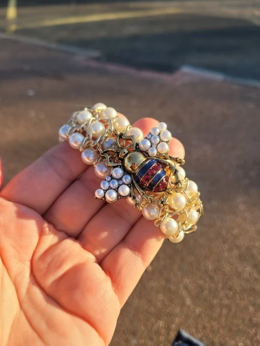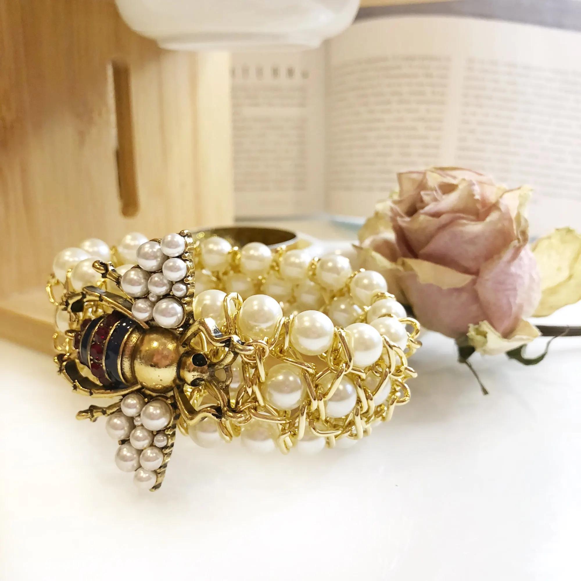 Роскошный эластичный браслет ручной работы с Пчелкой и жемчугом для женщин ювелирные изделия