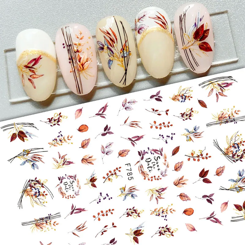 Переводные наклейки с изображением синих и зеленых листьев, осень наклейки из фольги для ногтей, художественное оформление ногтей, для маникюра
