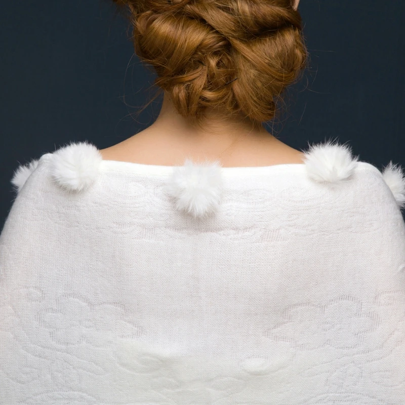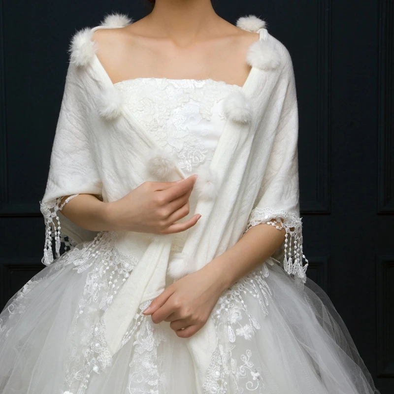 Шаль для невесты, зимние треугольные Свадебные жакеты для женщин, шаль помпон-кисточка