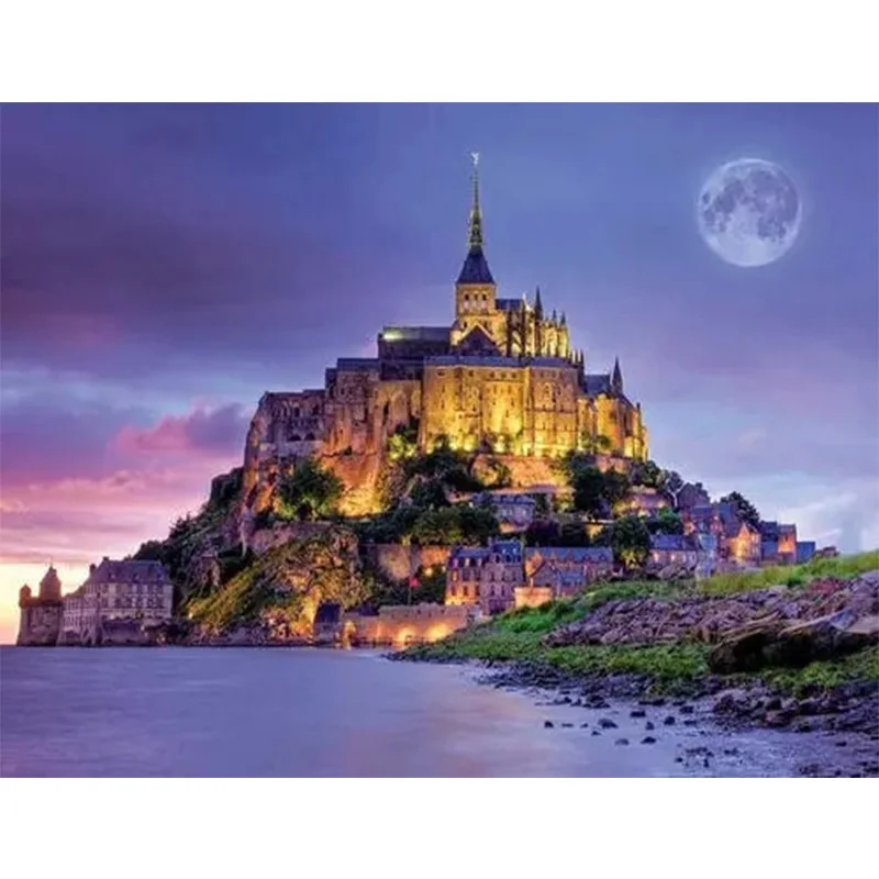 Алмазная 5D живопись сделай сам, пейзаж всемирно известной живописной монастье Монте Сен-Мишеля, квадратная круглая вышивка, мозаика, вышивка крестиком, Декор