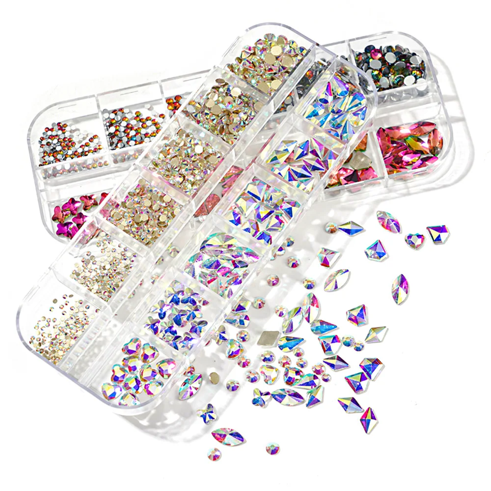 12 сеток/коробка красочные хрустальные стразы для нейл-арта акриловые SS4-SS16 камни для ногтей блестящие плоские с оборота ювелирные изделия 3D DIY украшения для нейл-арта