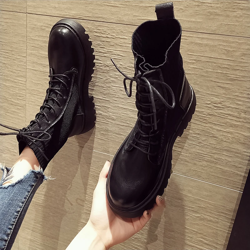 Женские ботильоны 2021, новые весенние мотоциклетные ботинки, обувь на толстом каблуке и платформе, женские модные ботинки без шнуровки с круглым носком