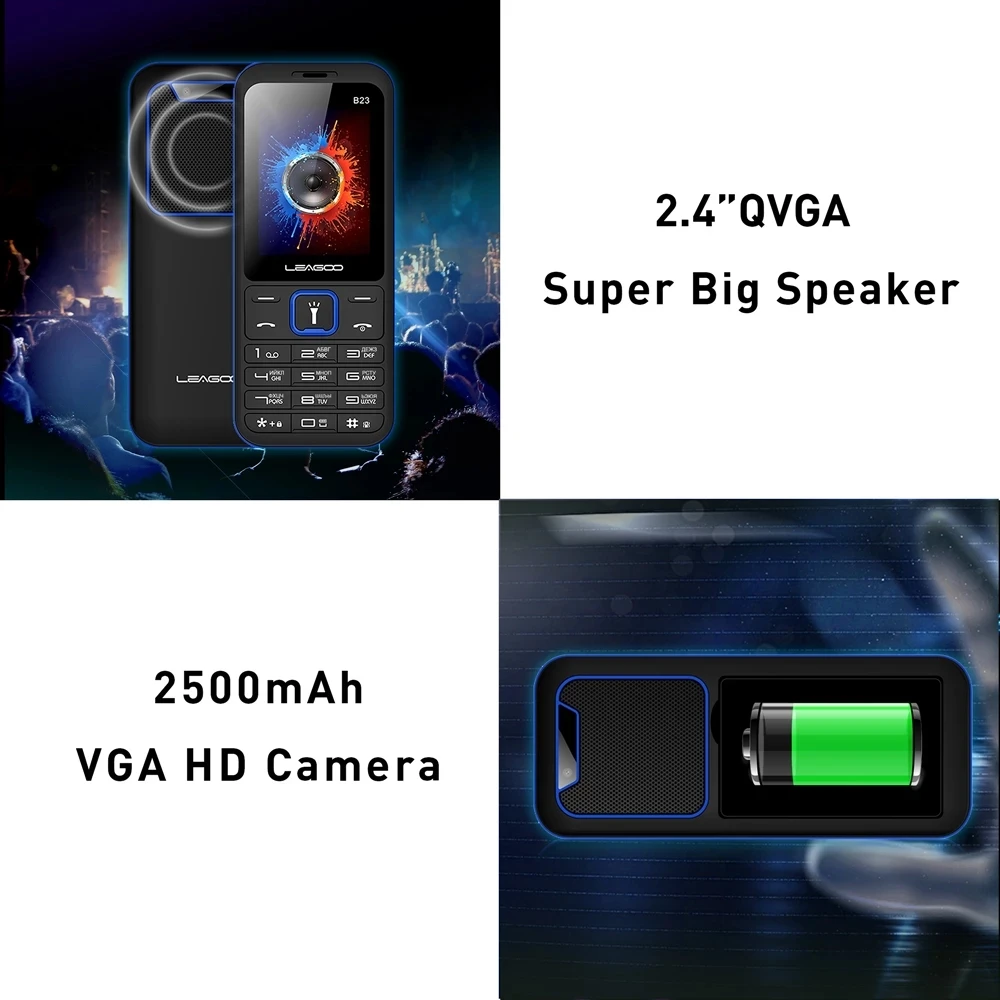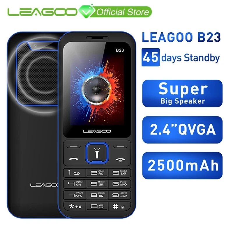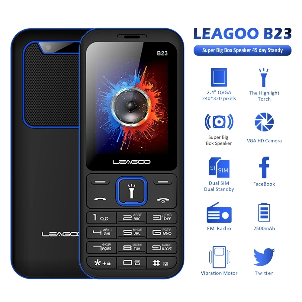 LEAGOO B23 функциональная кнопка, телефон с диагональю 2,4 дюйма, двумя Sim-картами, фонариком, MP3, FM-камерой, дешевый мобильный телефон