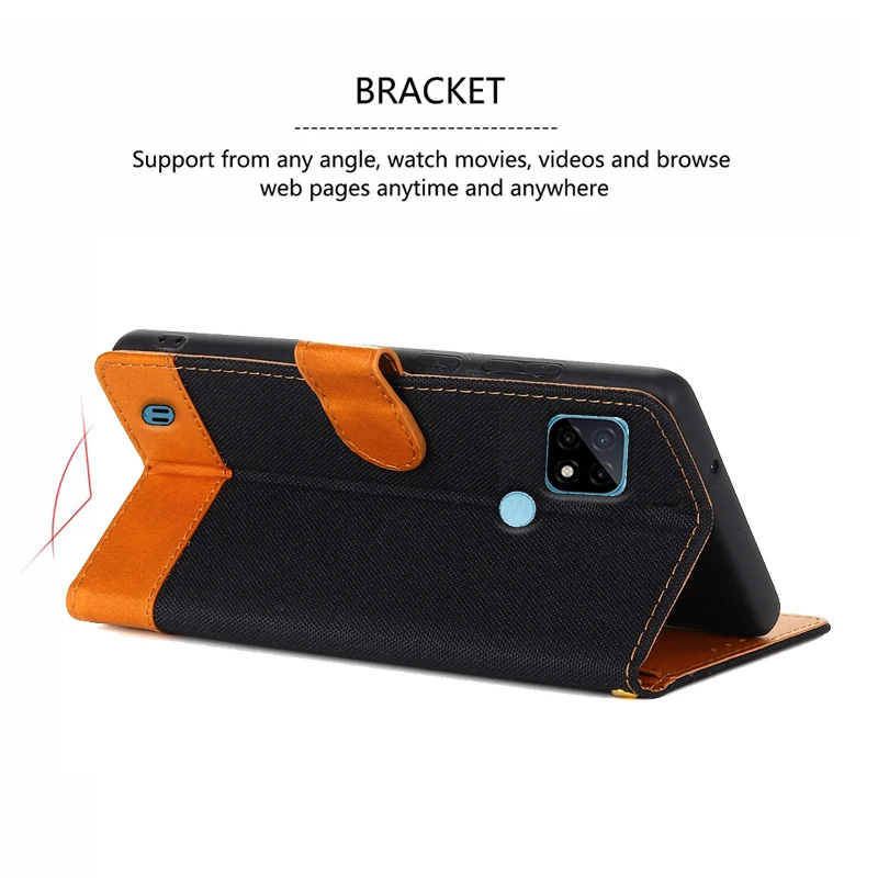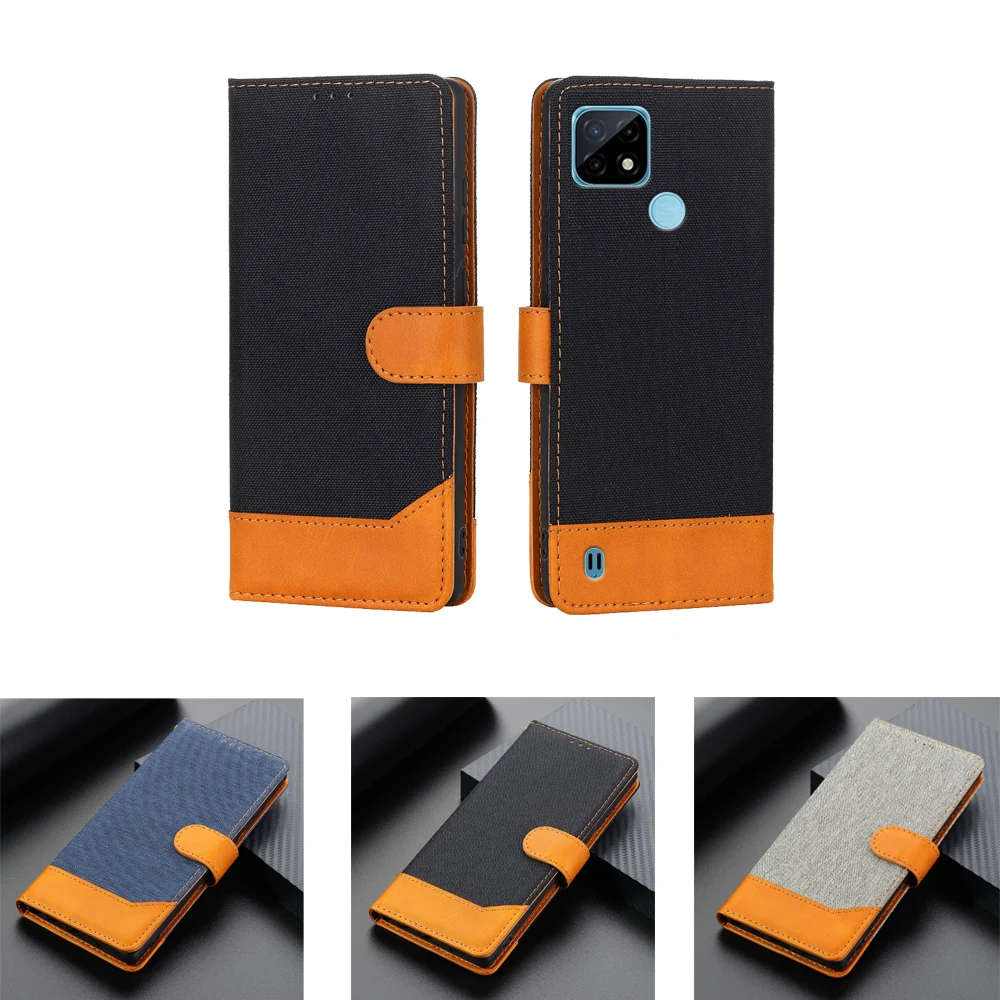 Новинка кожаный чехол-книжка с тканевой текстурой для Realme C21 Чехол-книжка с подставкой для Realme C 21 флип-чехол с магнитной застежкой для карт чехол-книжка