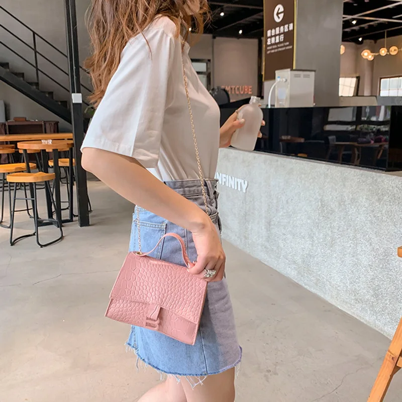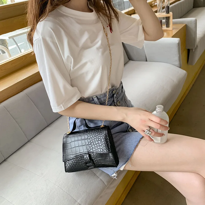 Модные женские Сумки из искусственной кожи, новинка весны 2021, сумки с крокодиловым узором, сумка-мессенджер на плечо, маленькая квадратная сумка с цепочкой и замком, оптовая продажа