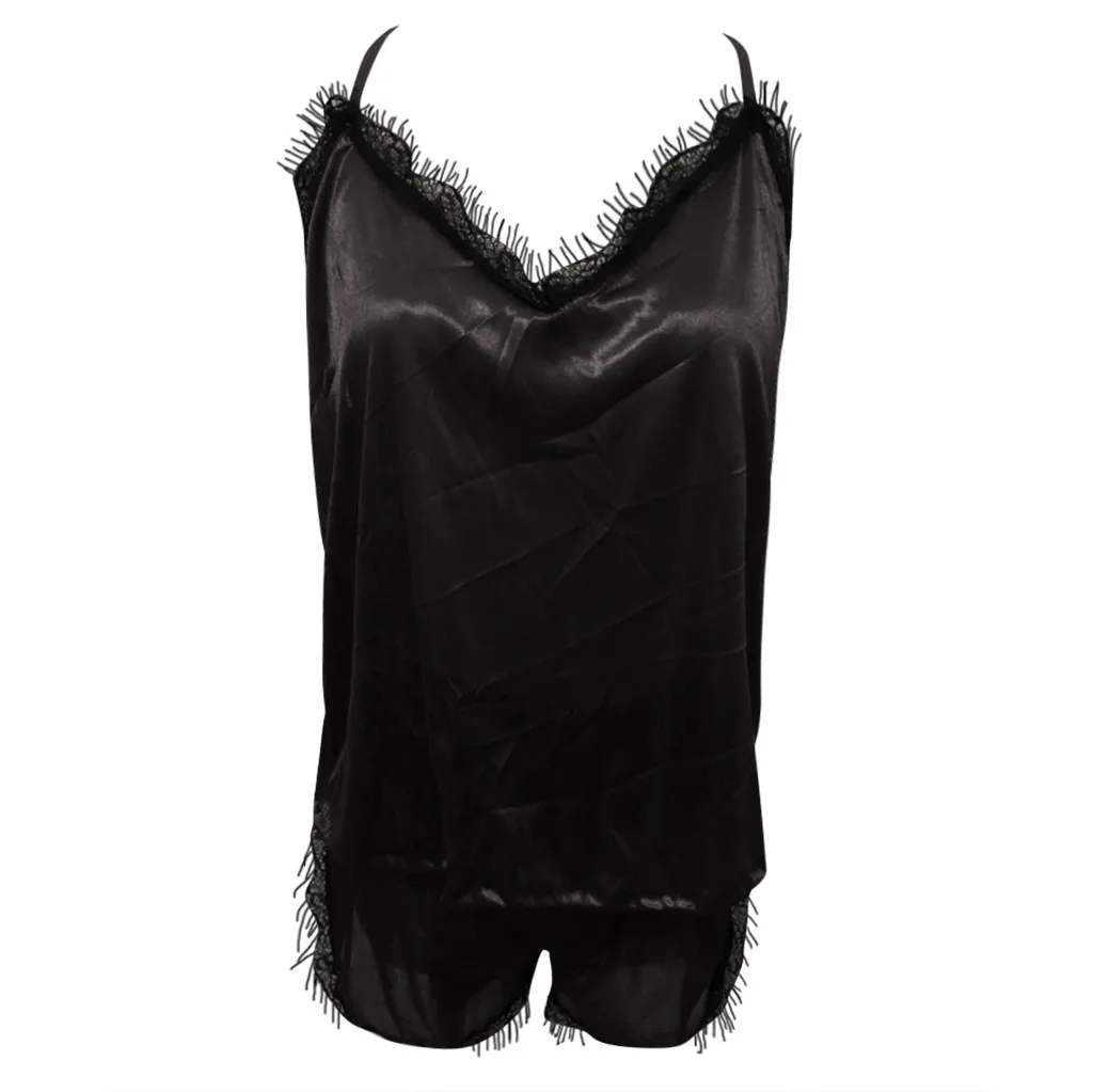 2 шт., Женская атласная пижама с кружевной отделкой и бретельками