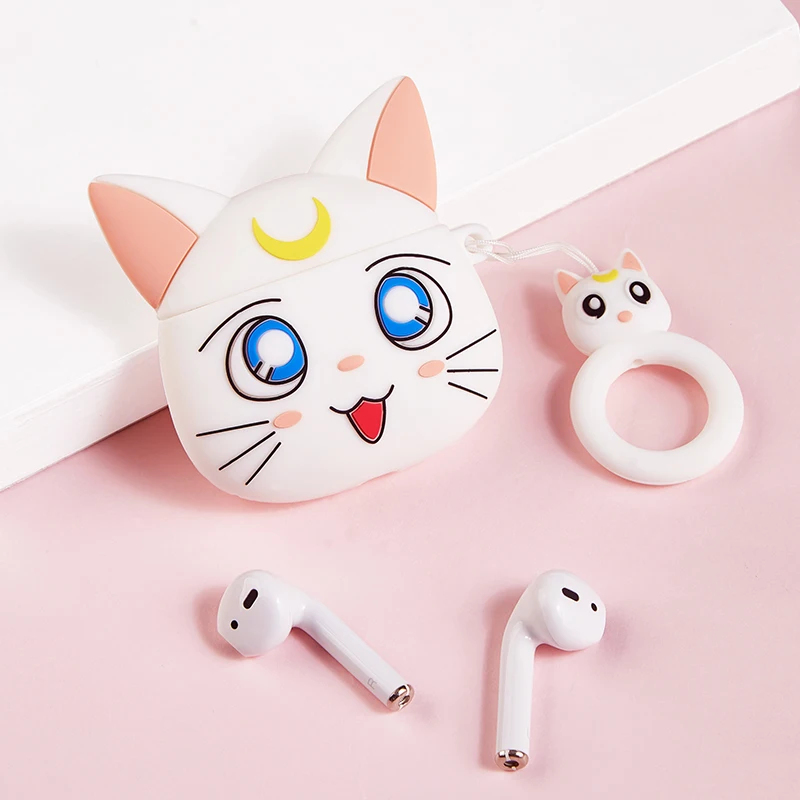 Чехол для AirPods Kawaii Anime Cat, чехол для наушников Apple Airpods 1 2 pro, защитный чехол с ремешком и кольцом на палец, розовый