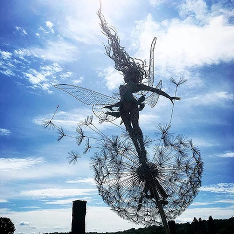 Декор для сада, сказочные танцы на колышке с одуванчиком, танцевальные вместе, металлические садовые настенные дворы, художественные фигурки, лужайка, скульптура ландшафта