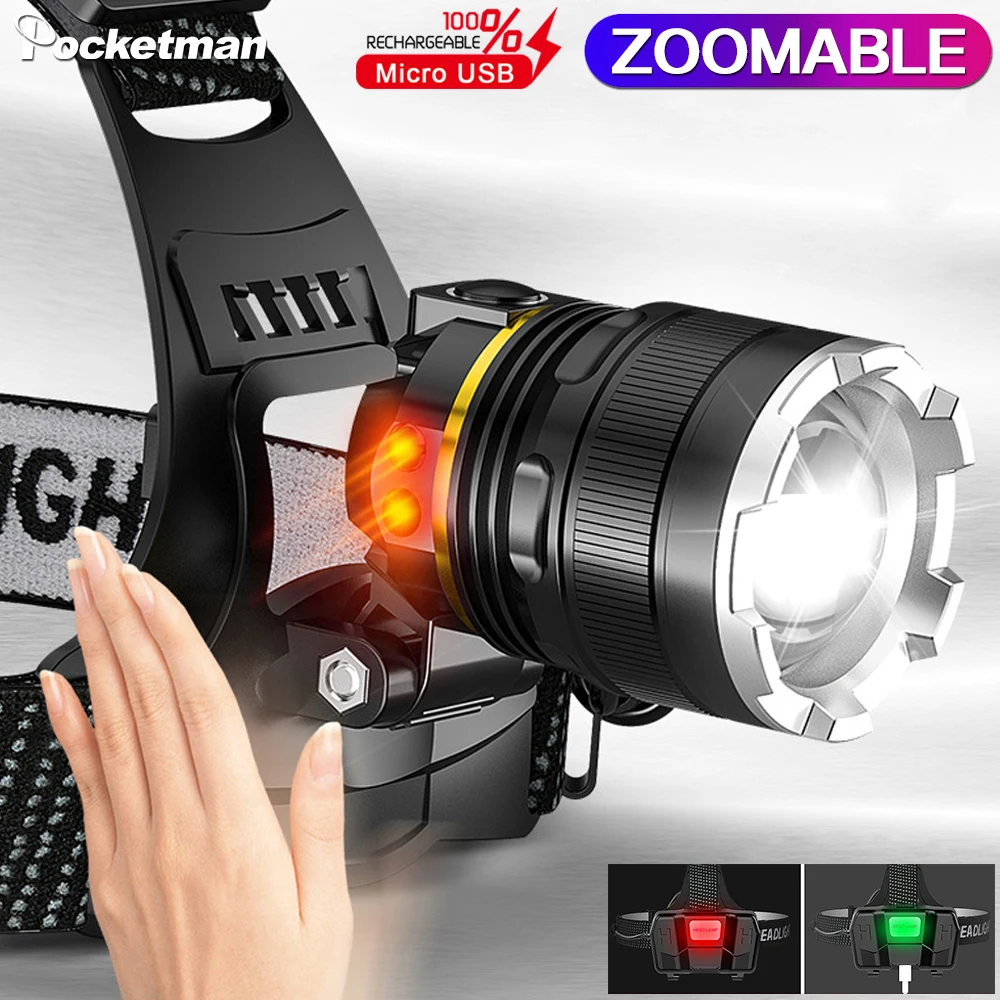 Мощный налобный фонарь с датчиком движения, головной светильник с зарядкой от USB, уличный фонарь для рыбалки, освесветильник для кемпинга и бега