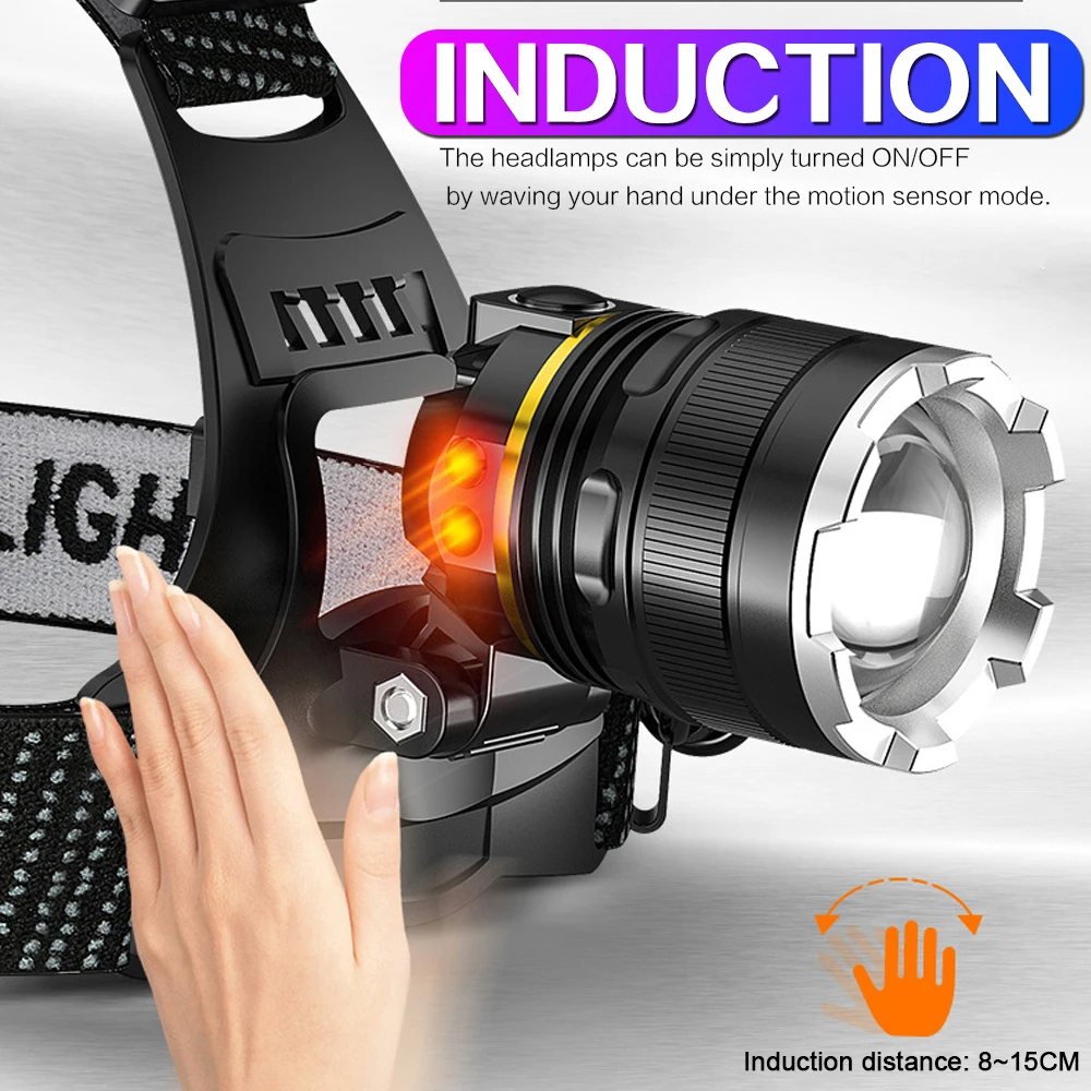 8000лм мощный налобный фонарь с датчиком движения головной светильник USB перезаряжаемая головная лампа наружный рыболовный головной светильник походный беговой светильник