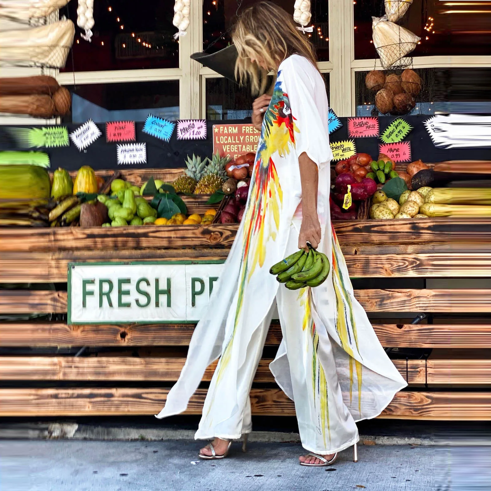 Стиль: идеально подходит как уличная одежда, пляжная одежда, одежда для отдыха, повседневное кимоно, Пляжный купальный костюм накидка, модная шифоновая блузка, сексуальный пляжный чехол Топ, тонкое пальто на весну, лето, осень и т. д. Универсальный гардероб Штапель как для жарких дней на улице, так и для холодного кондиционирования воздуха в помещении
