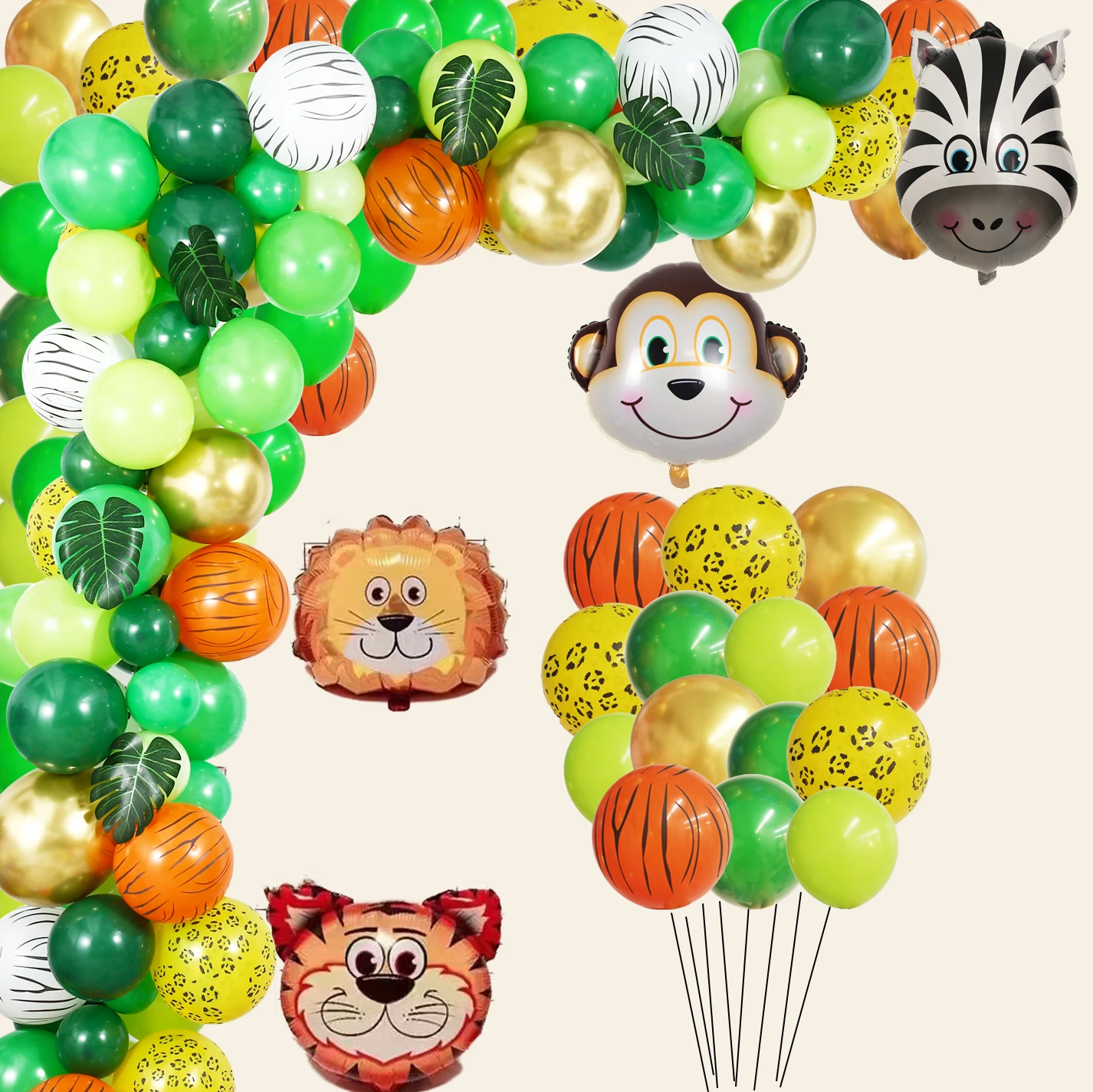 Воздушный шар в виде сафари в джунглях, комплект гирлянды с воздушные шарики в виде животных пальмовыми листьями, украшение для детского дня рождения