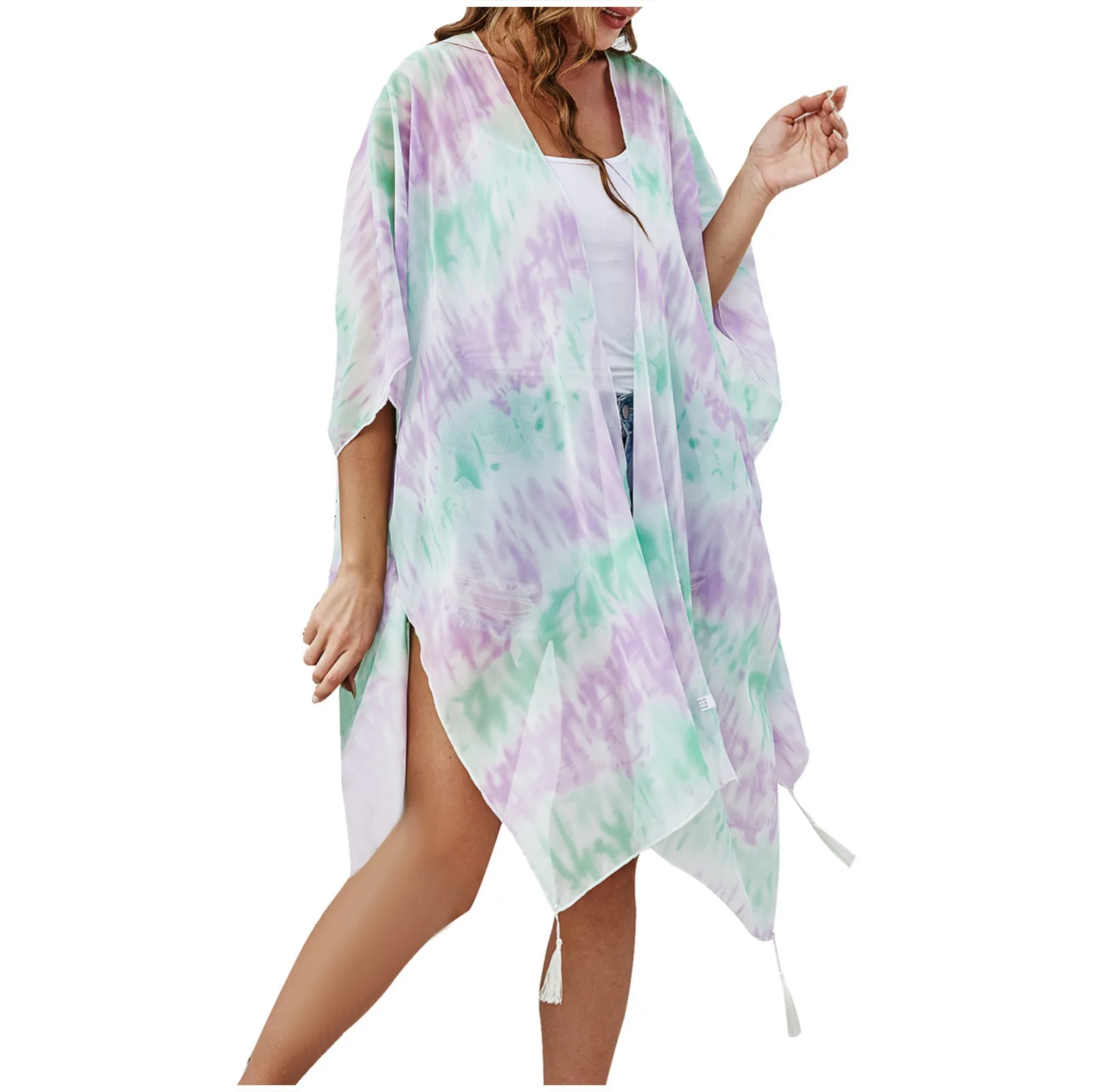 2021 летнее женское шифоновое кимоно, пляжный кардиган, прозрачная накидка, одежда для плавания, Длинная блузка, рубашки, женская блузка