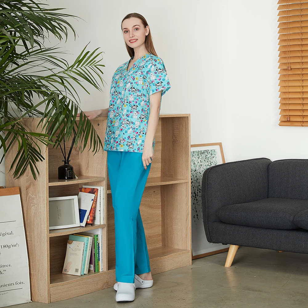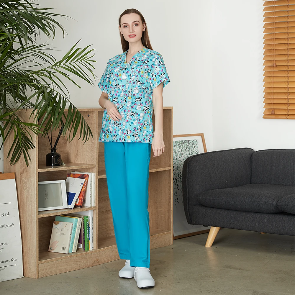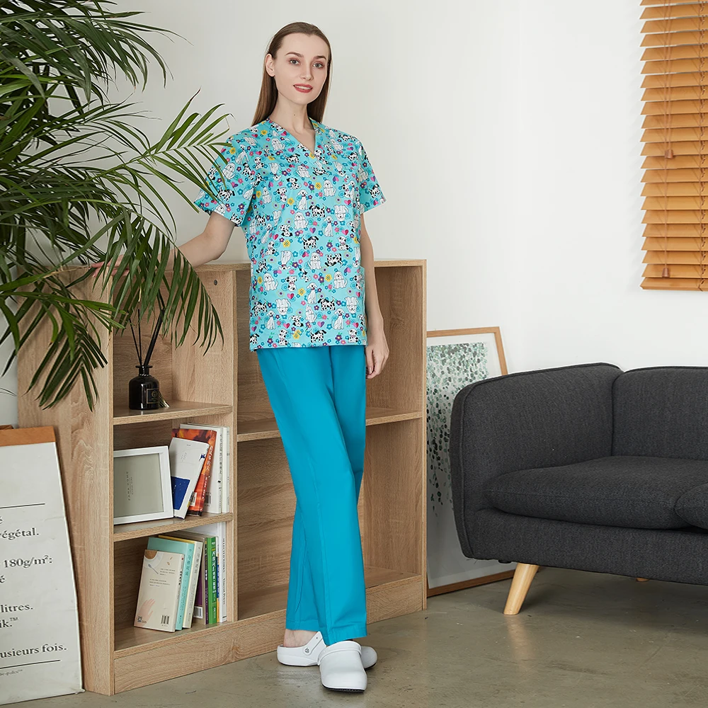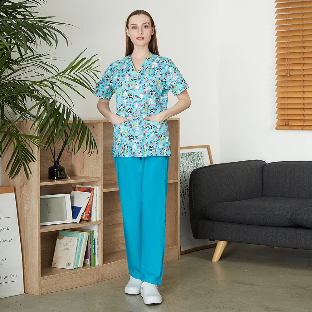 Одежда для работы в ветеринарии, топ с коротким рукавом, с принтом на тему собак, медицинский комплект, синий зоомагазин, Рабочая Униформа, чистая скраб-одежда, аксессуары для медсестер