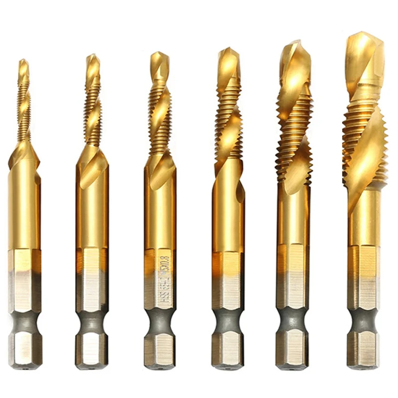 6 шт. M3-M10 винтовой кран сверла бит шестнадцатеричный хвостовик метрический Титан покрытием HSS кран с винтовой резьбой машина составной кран столешница Deburr