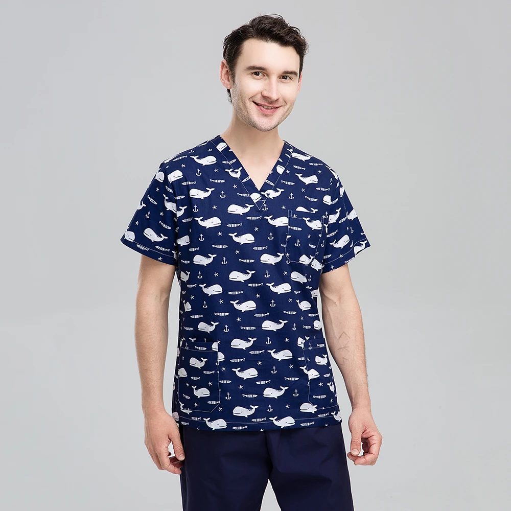 Одежда для хирургии с принтом животных, хлопковая медицинская одежд...