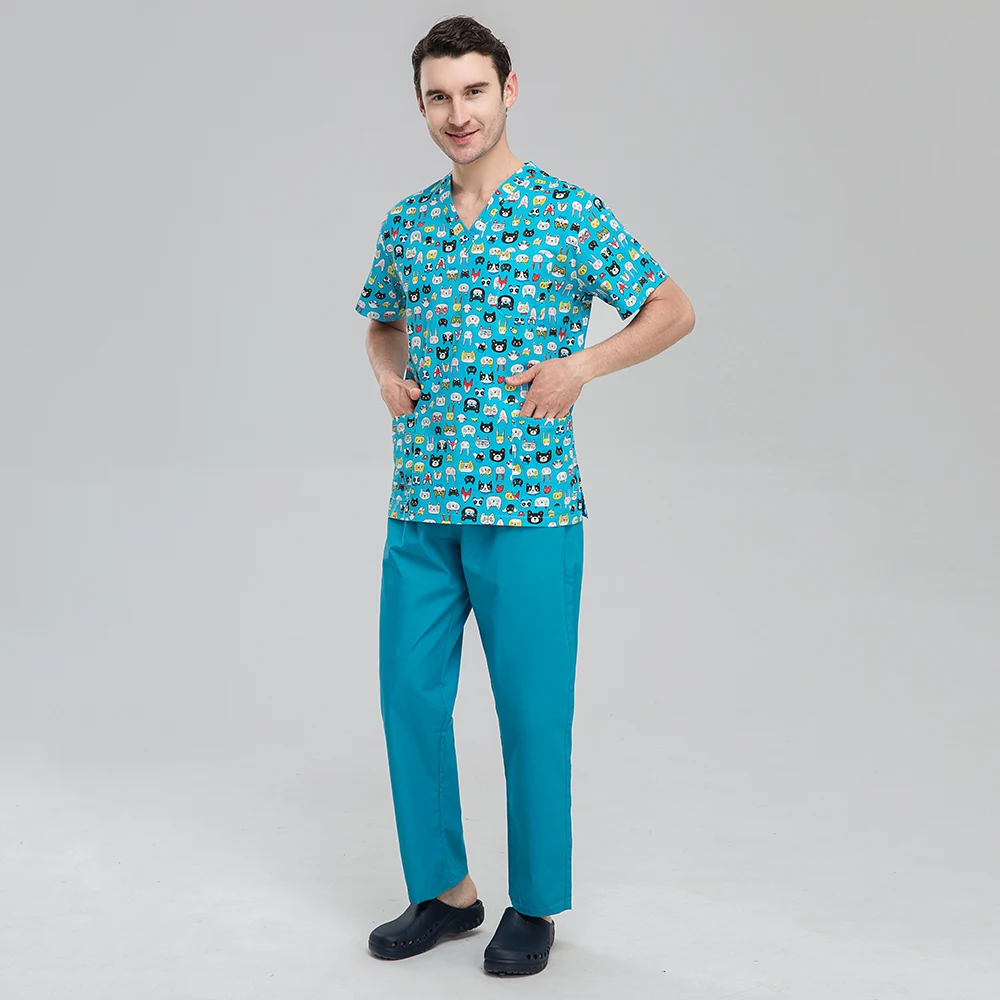 Одежда для хирургии с принтом животных, хлопковая медицинская одежд...