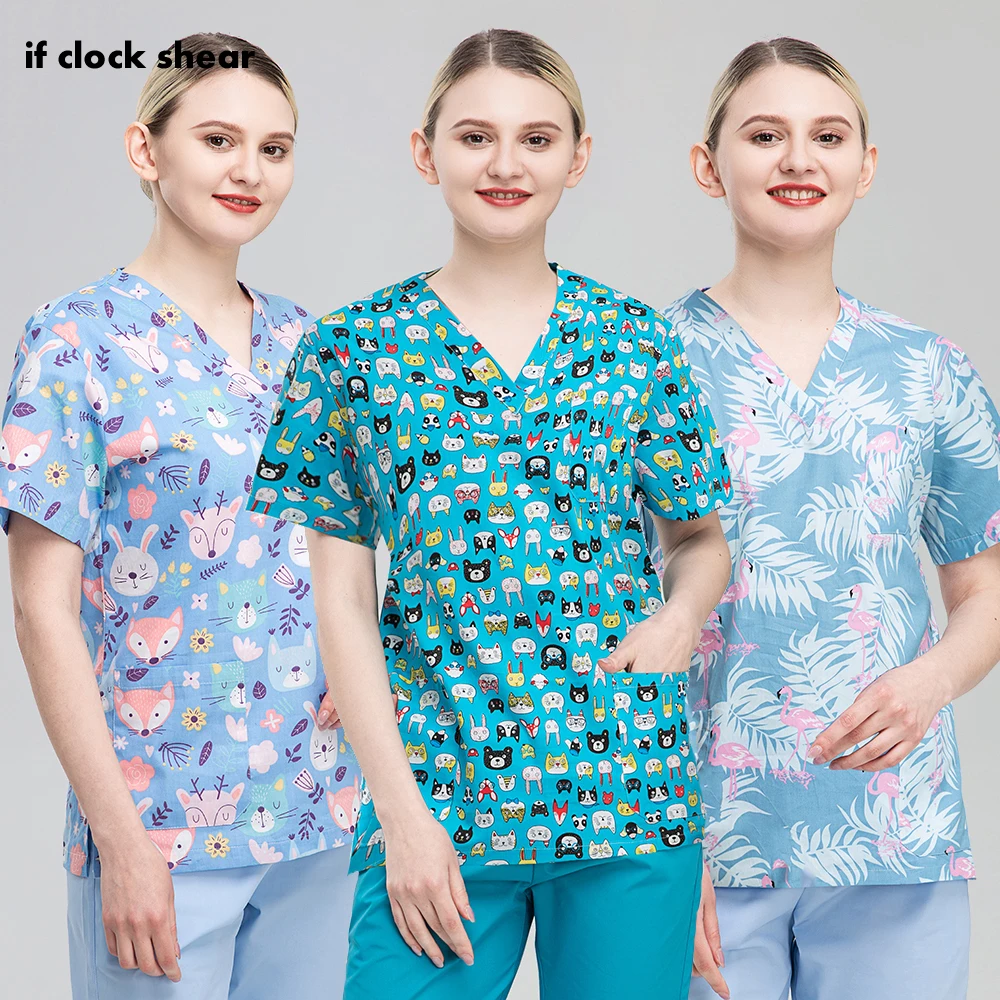 Scrubs tops Cute Cartoon printing Kindergarten teacher workwear pet...