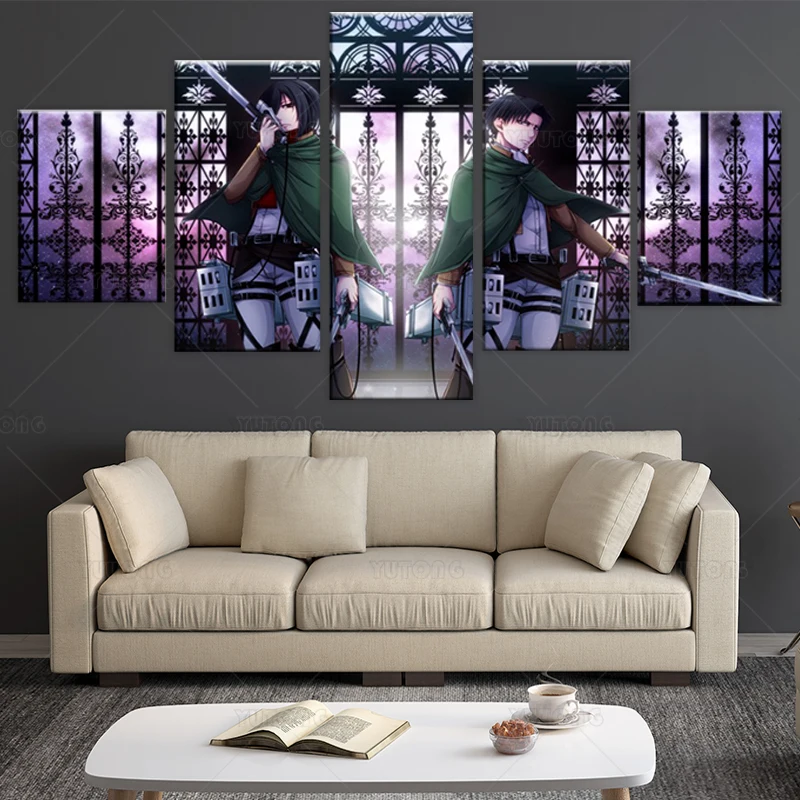 Декоративные плакаты из аниме атака на Титанов, настенные художественные картины, 5 шт., Levi Ackerman, Mikasa Ackerman, холст с HD-печатью, картины