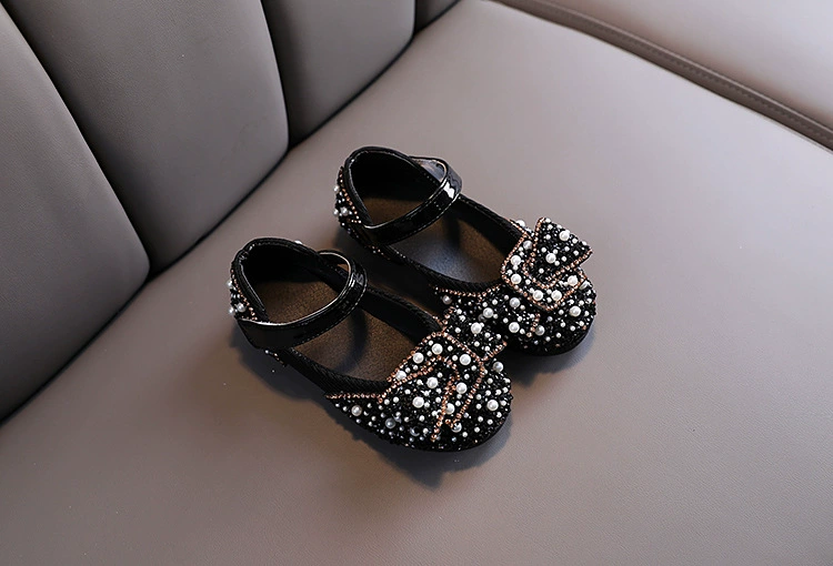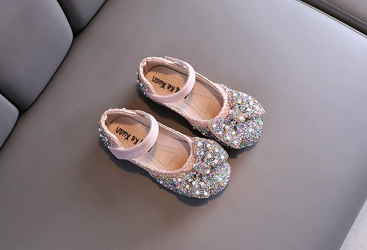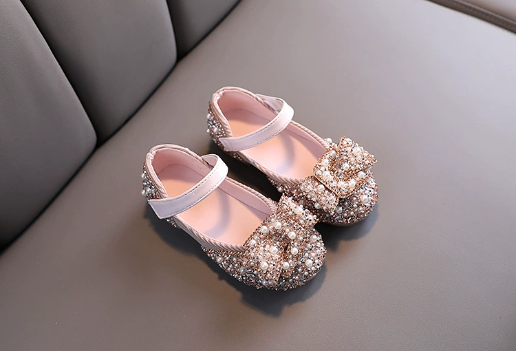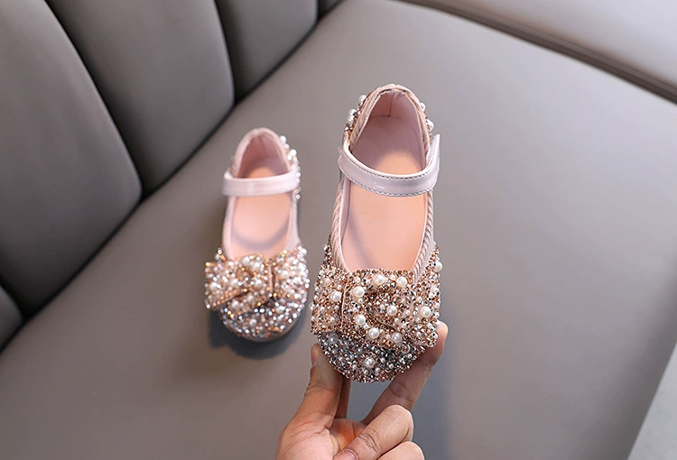 Детские кожаные туфли Стразы с жемчугом, блестящие детские туфли пр...