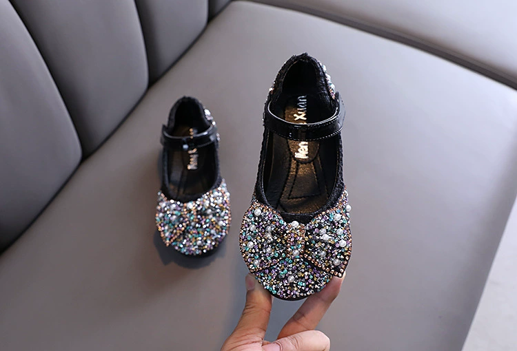 Обувь принцессы детская кожаная обувь со стразами и бантом детская ...