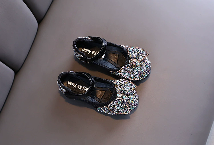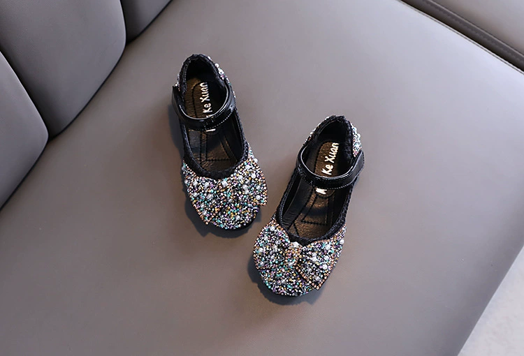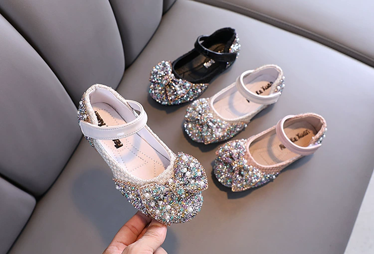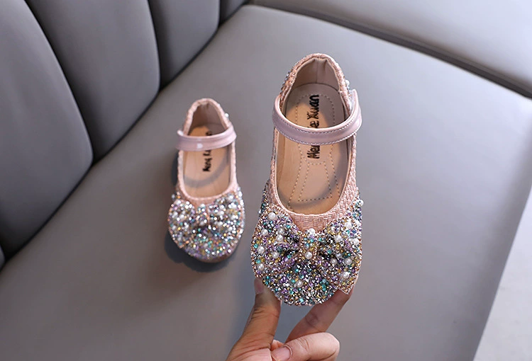 Обувь принцессы для девочек, Осенняя детская обувь принцессы с бантом и блестками, детские туфли на плоской подошве с ремешком для девочек, Размеры ЕС 21 36