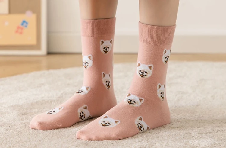 2021 милые носки с изображением мультяшной собаки средней длины, кр...