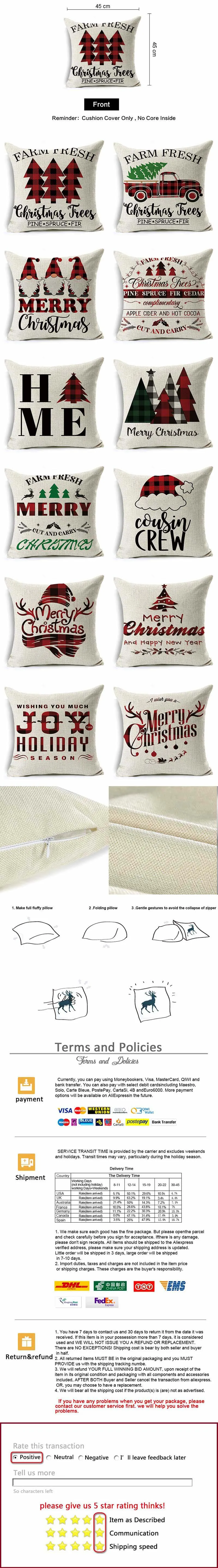 Рождественский чехол для подушки, наволочка, льняная наволочка, чехол для подушки, рождественские подарки, домашний офис, гостиная, 45х45см