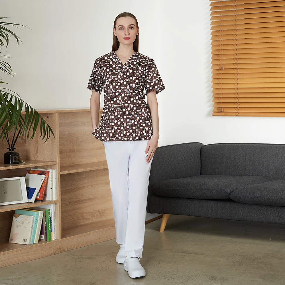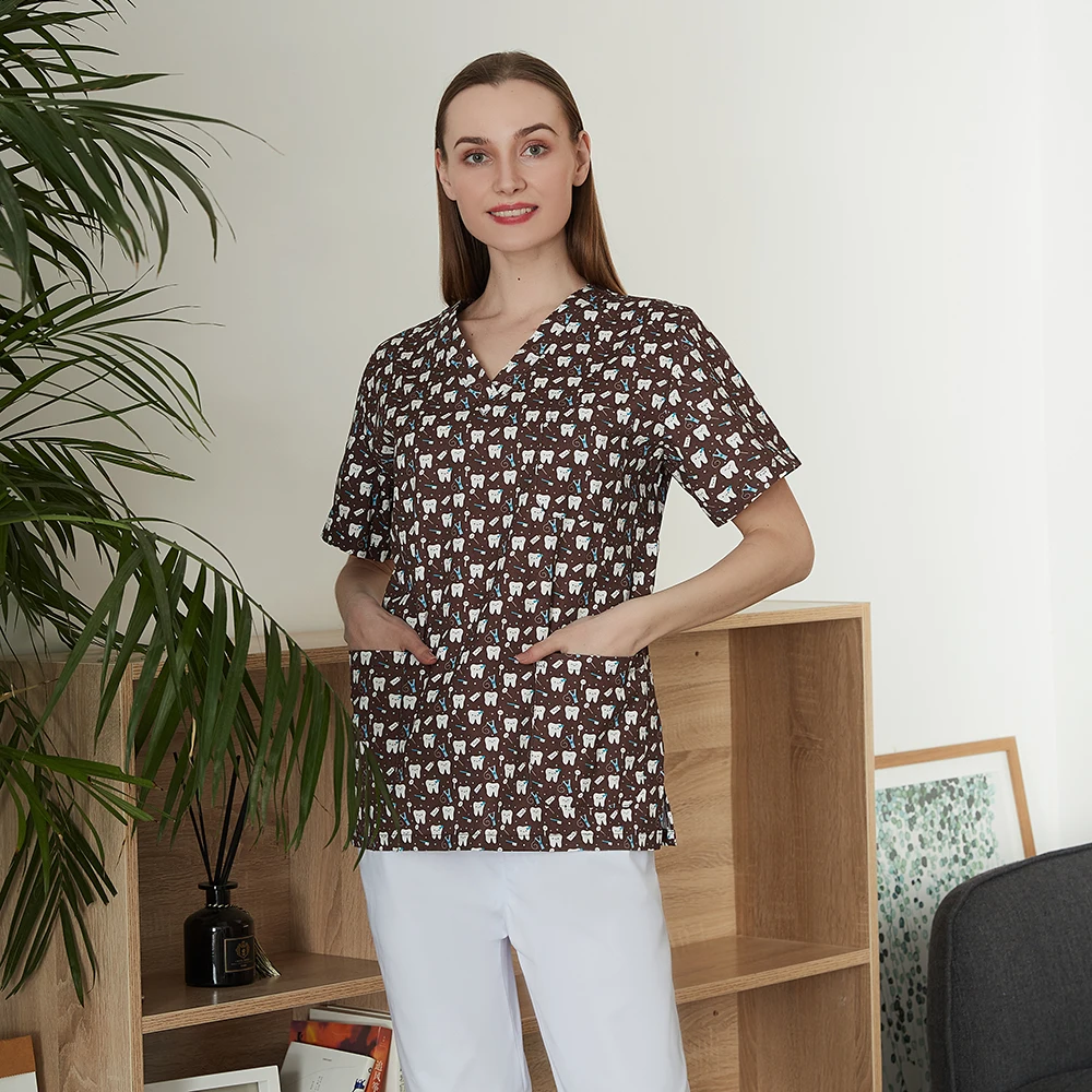 Медицинский Топ, набор хирургической одежды для больницы, с принтом зубов, рабочая одежда для лаборатории, стоматологическая клиника медсестра