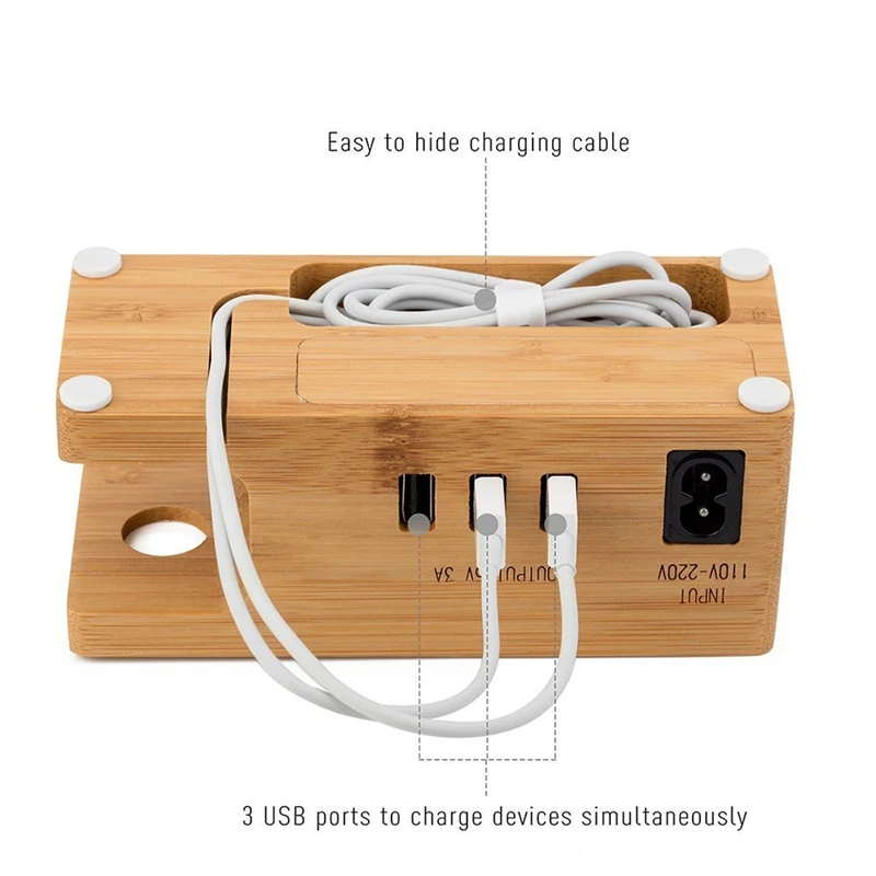 Бамбуковая деревянная зарядная станция с 3 USB-портами для Apple Watch iPhone 12 11 Pro Max XR, зарядная док-станция, зарядная подставка, держатель для iWatch