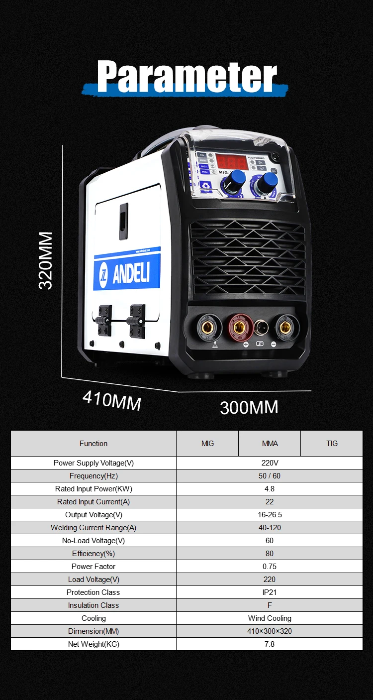 ANDELI, 220 В, стандартный полуавтоматический сварочный аппарат для MIG-сварки, подъемник TIG MMA MIG 3 в 1, сварка без газового флюса, сердечник, сварочный аппарат MIG