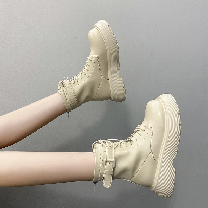 Женские ботильоны на платформе, с круглым носком, на шнуровке