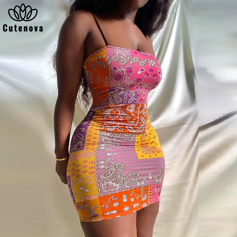 Сексуальные вечерние Клубные облегающие платья cutenine для женщин 2021 летняя одежда с принтом Camisole Slim Mixi платье женская уличная одежда