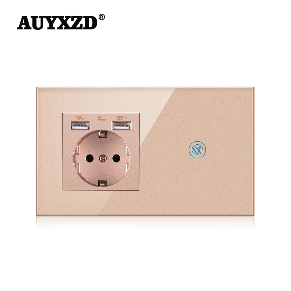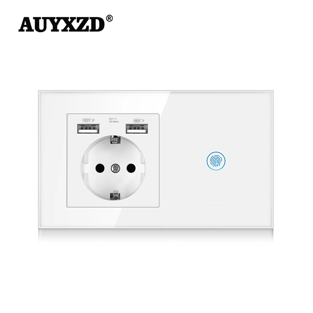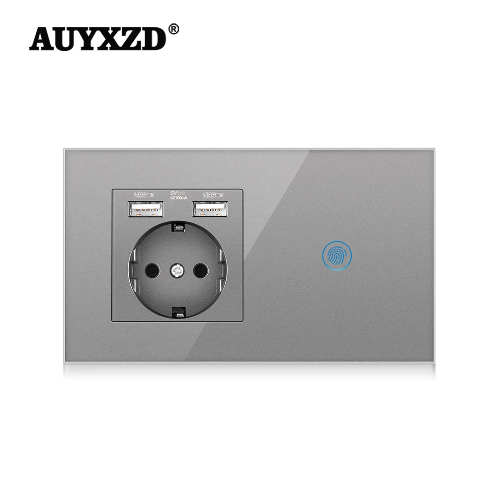Панель настенная из закаленного стекла AUYXZD, сенсорная евросветильник етка с USB-разъемом, 5 В, 2100 мА