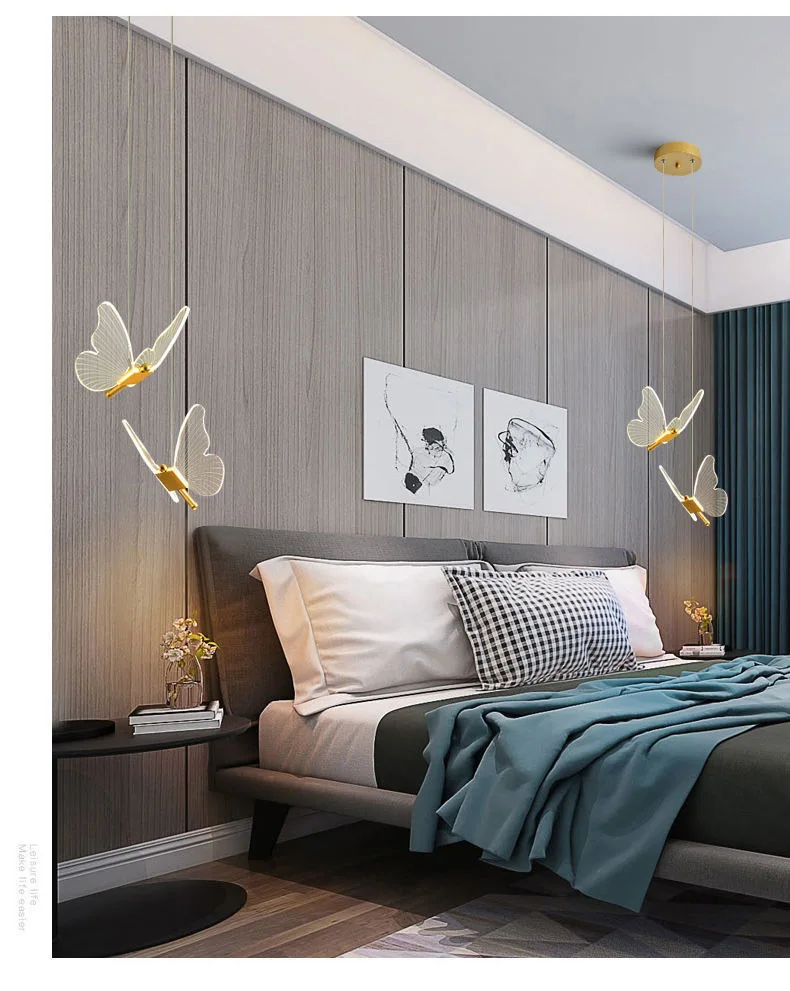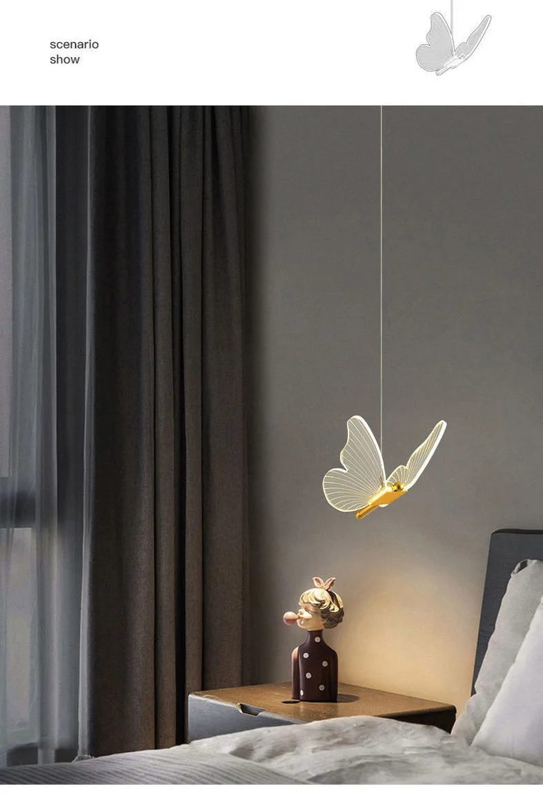 Светодиодный подвесной светильник в виде бабочки, Скандинавская лампа для спальни, прикроватного столика, лестницы, комнатное освещение