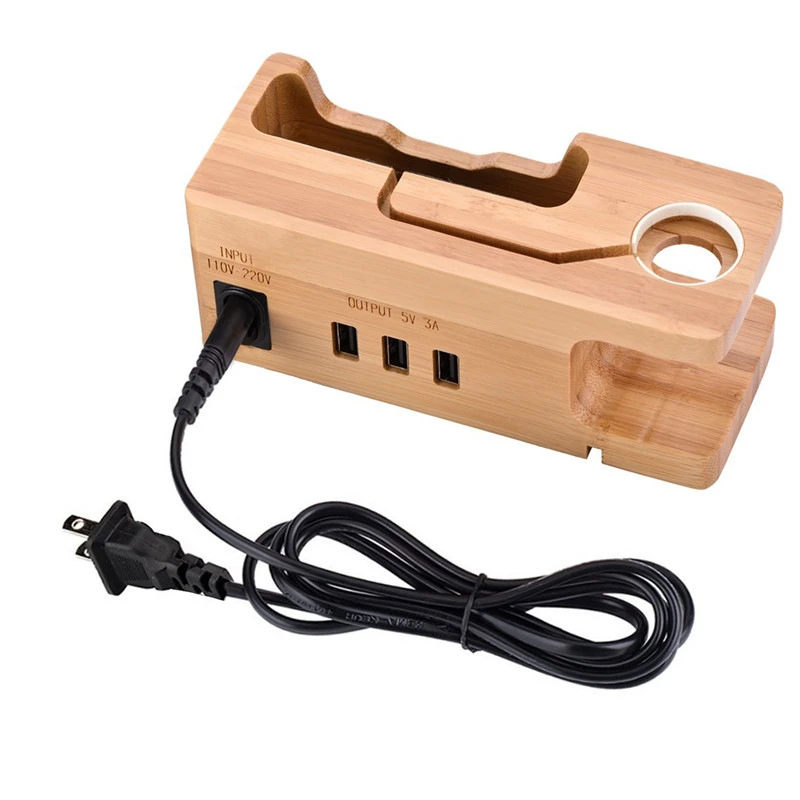 Зарядная док-станция из бамбука, мобильный телефон, 3 USB-порта, для Apple Watch iWatch, iPhone 12, 11 Pro Max, XR