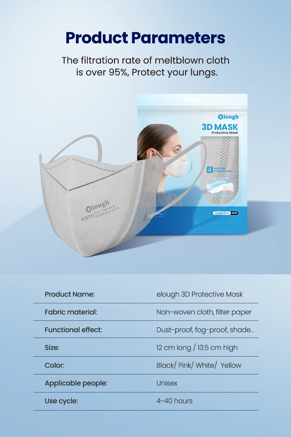 Маска elough kn95 fpp2, маска для взрослых, сертифицированная ffp2mask