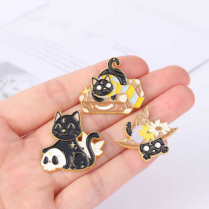 Винтажный портфель с черными котами на лацканах для шарфа, броши в виде волшебной шляпы с цветами, металлические значки для сумки, шляпы, фэнтези, фильмов, ювелирные изделия, подарки