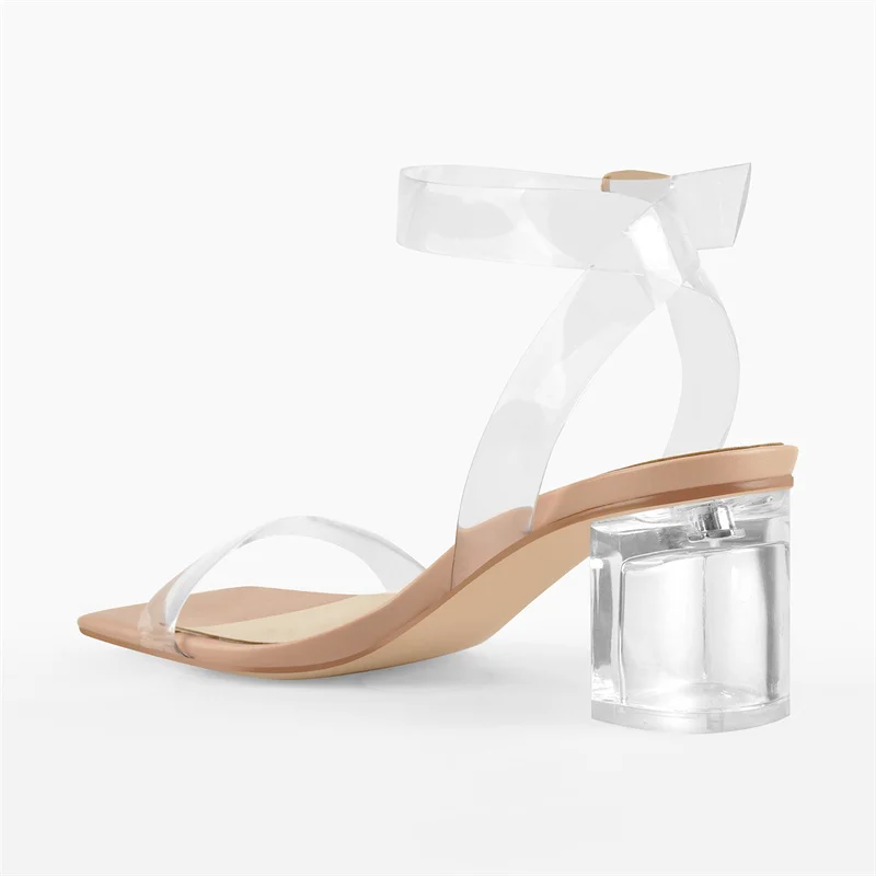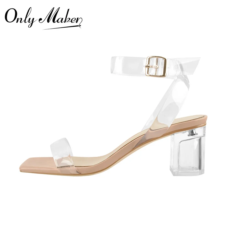 Сандалии Onlymaker Женские на квадратном каблуке, прозрачные босоножки с ремешком из ПВХ, удобная Свадебная обувь, большие размеры, на лето