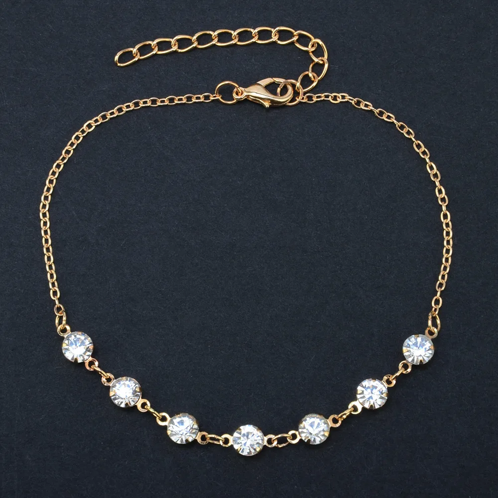Женский ножной браслет, Блестящий металлический браслет на ногу, украшенный стразами