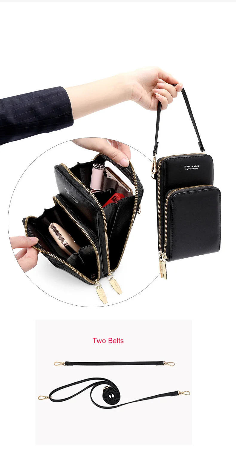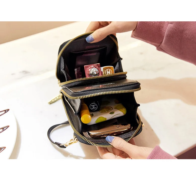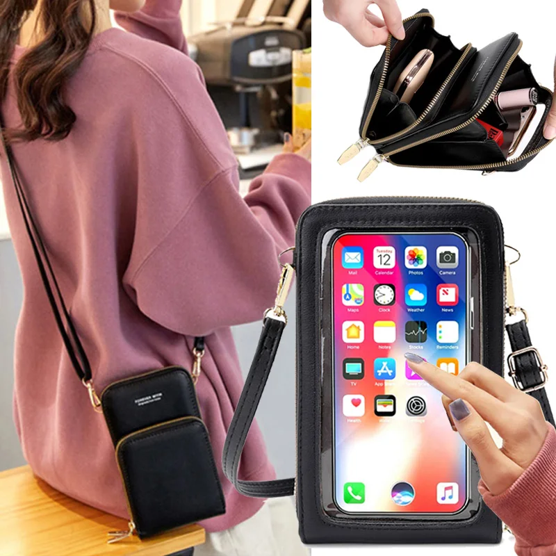 Прозрачная сумка через плечо для телефона с сенсорным экраном, женская сумка из мягкой искусственной кожи на молнии, кошелек для кредитных карт и монет, сумки через плечо, сумка для девушек